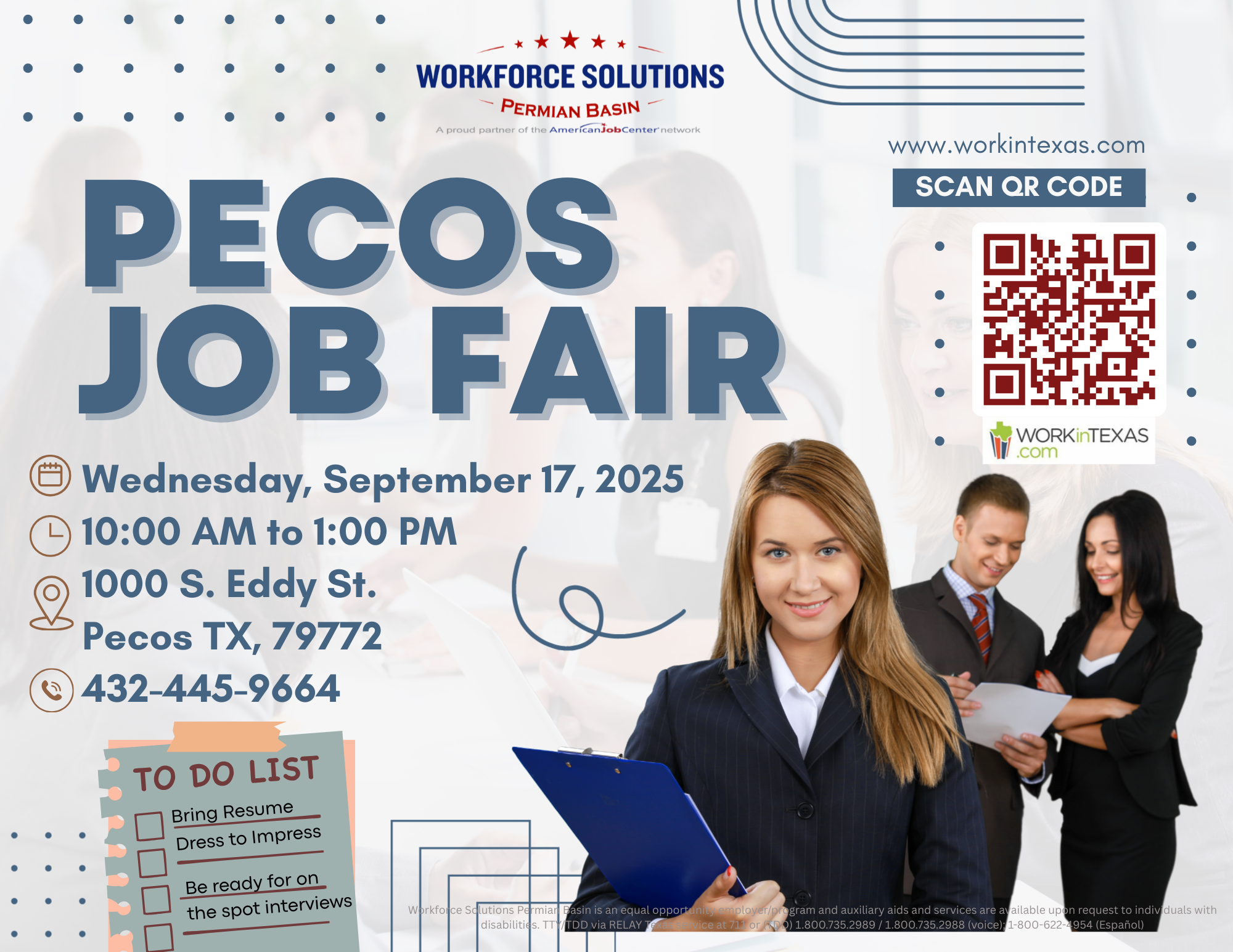 Join us for an in-person hiring event. Job Seekers will have the opportunity to meet with a wide range of employers from various industries. For more information call Maribel Guerra at 432.445.9664.