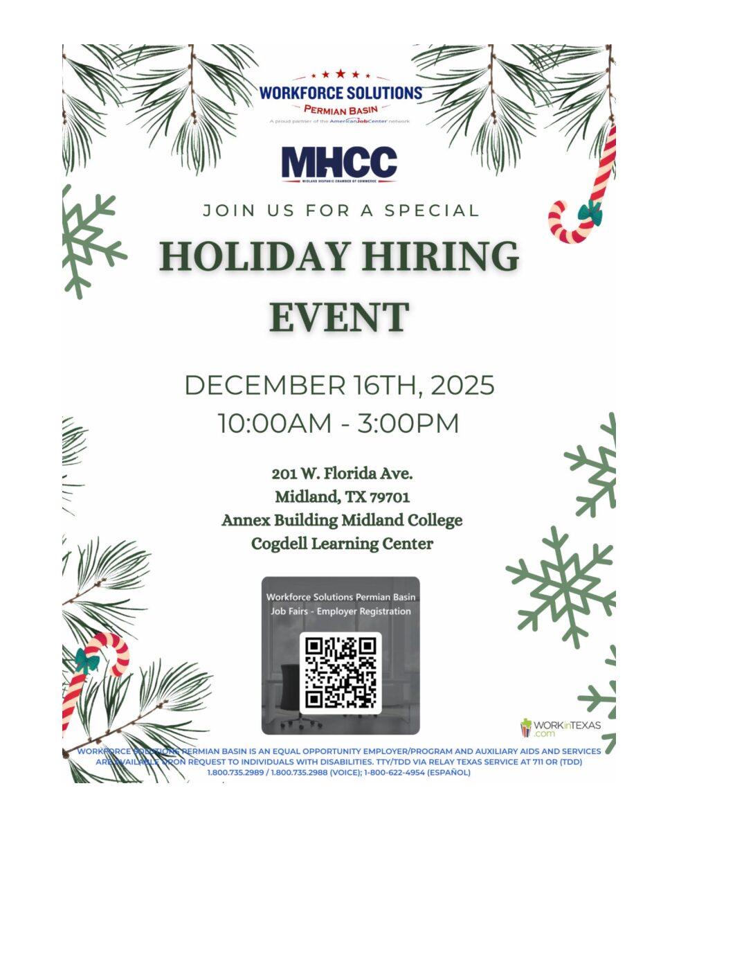 Cogdell Learning Center - Midland College 201 W. Florida Ave., Midland, TX, United StatesEmployers will be onsite ready to meet YOU — no appointment needed.